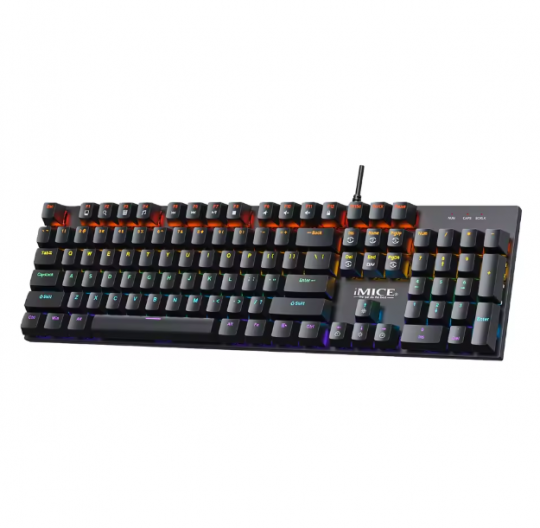 The iMICE GK-600 RGB Mechanical Gaming Keyboard features a full-size 104-key layout with anti-ghosting and multi-key support, ensuring precision during intense gaming sessions.